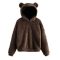 Chocolate Bear-Ear Teddy Hoodie – Plush Faux Fur Novelty Pullover