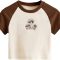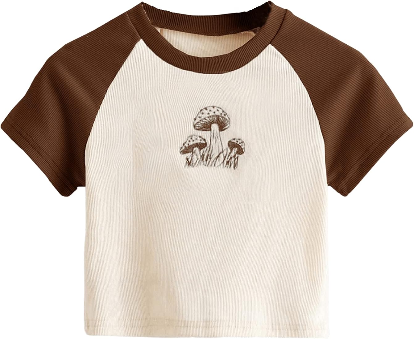 Retro Mushroom Graphic Raglan Crop Top – Cocoa & Cream