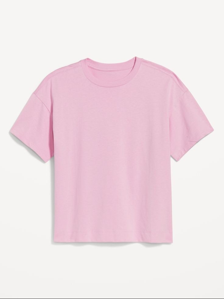 Women’s Relaxed Fit Crewneck Tee – Soft Rose Pink Oversized Cotton T-Shirt